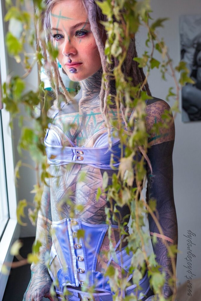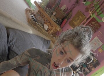A heavily tattooed alternative dreadhead.
