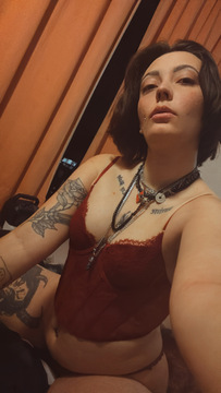 Photos avec mon corset rouge qui remonte bien mes gros seins