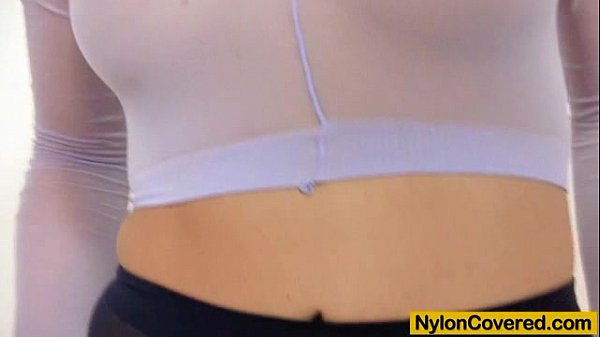 Hot blonde red spandex mask on her face 5分钟